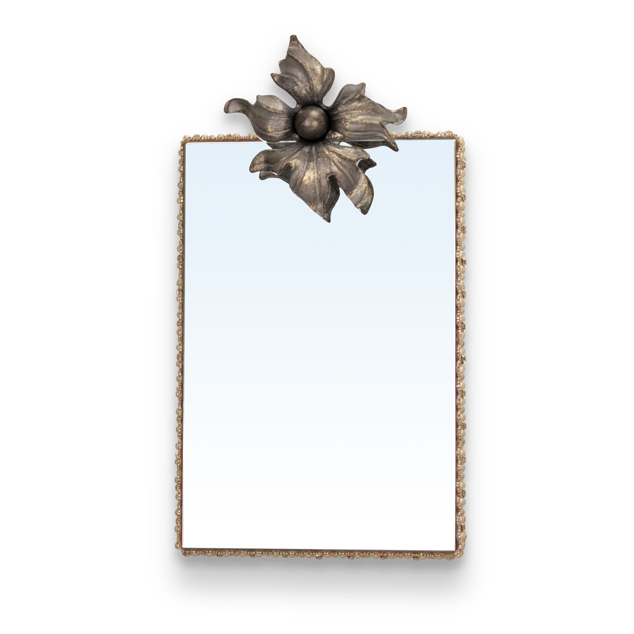 - Dainty and elegant mirror with hand painted iron floret in champagne and iron tone