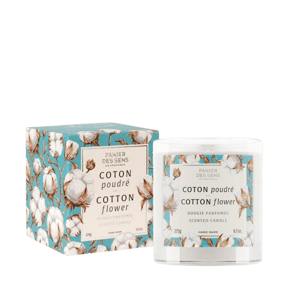 The cotton flower scented candle is natural and eco-designed, made from a blend of 100% vegetable waxes. Its raw materials create a high-quality marriage between wax and perfume, for optimal diffusion.