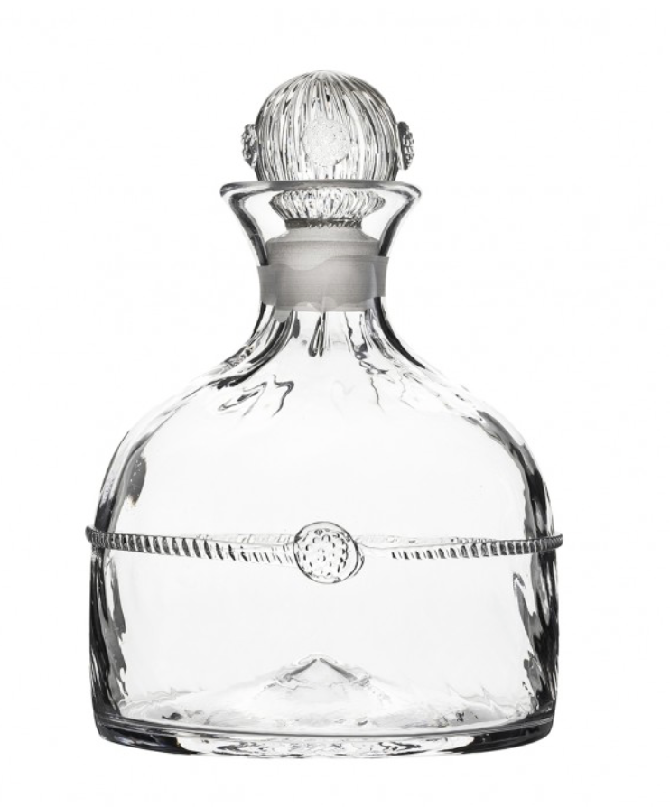 From our Graham Collection- Crowned with a simple thread and single berry, dressed in optic glass from the waist down and belted with a charming sash, this handsome decanter is worthy of your best single malt.