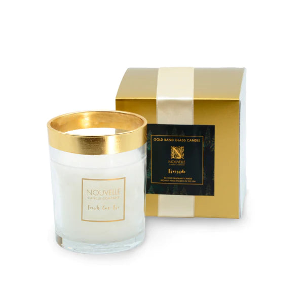 Why Choose Nouvelle Candle's Large Gold Band Glass Candle from the Holiday Collection: