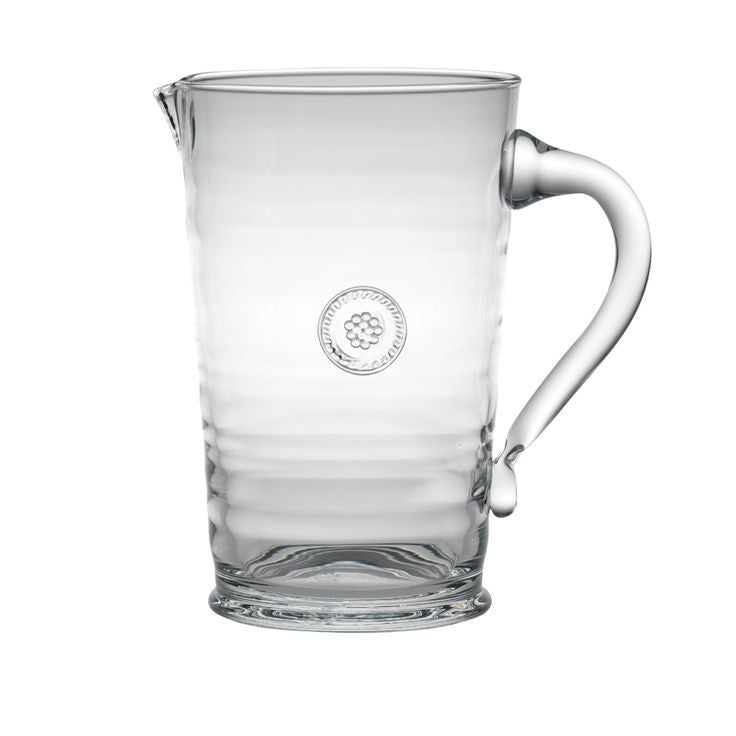 From our Berry & Thread Collection - From bunches of blooms to your freshest juices, our mouth blown glass pitcher crafted by artisans in Portugal offers an organic texture blending everyday elegance with practicality. Neatly trimmed with our signature berry and thread medallion.
