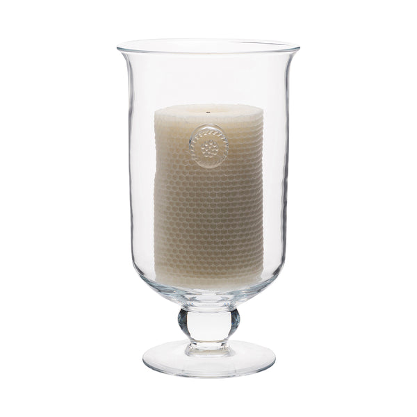 From our Berry & Thread Collection- Let dancing candlelight set the scene for a romantic night. Emblazoned with our signature medallion, our hurricane is classically styled allowing it to blend with any decor and add just the right amount of sparkle to your soiree. It can also be used as a great vase.