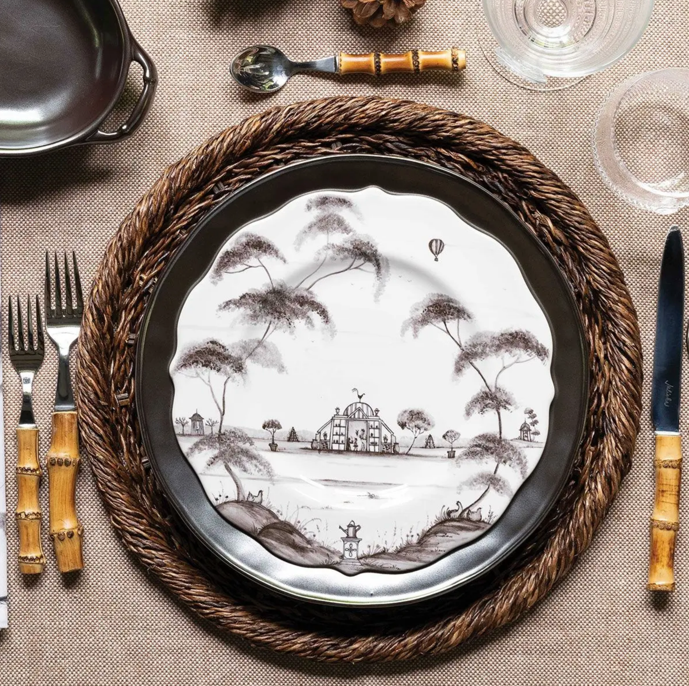 From our Pewter Stoneware Collection- A sleek minimalism anchors this plate firmly in the present, but its lustrous pewter hue and finish will inspire thoughts of romantic and rainy Parisian streets or moonlit serenades on Venetian canals.