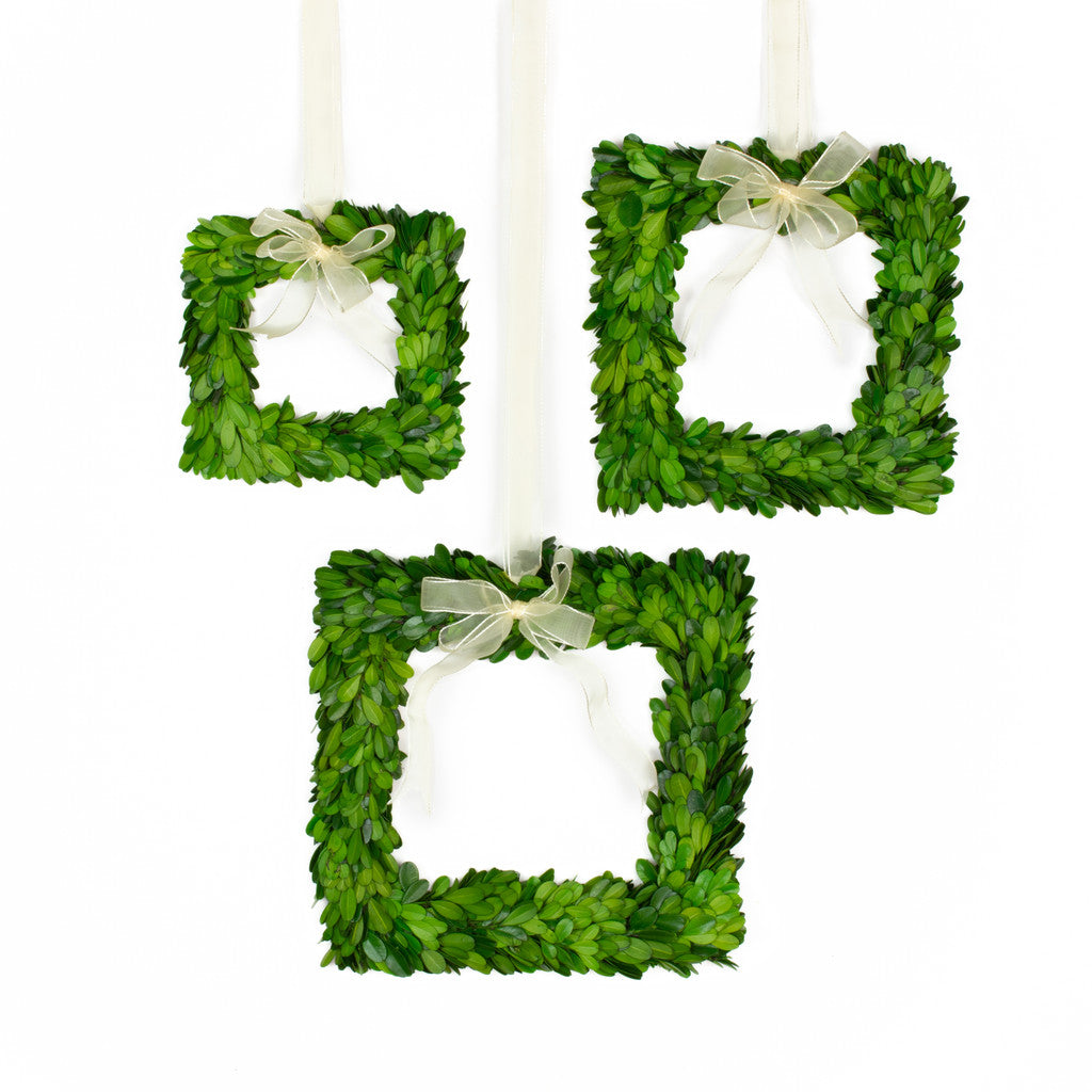 Real Preserved Boxwoods Square Wreaths Set - Varied Sizes - 3 pcs Set