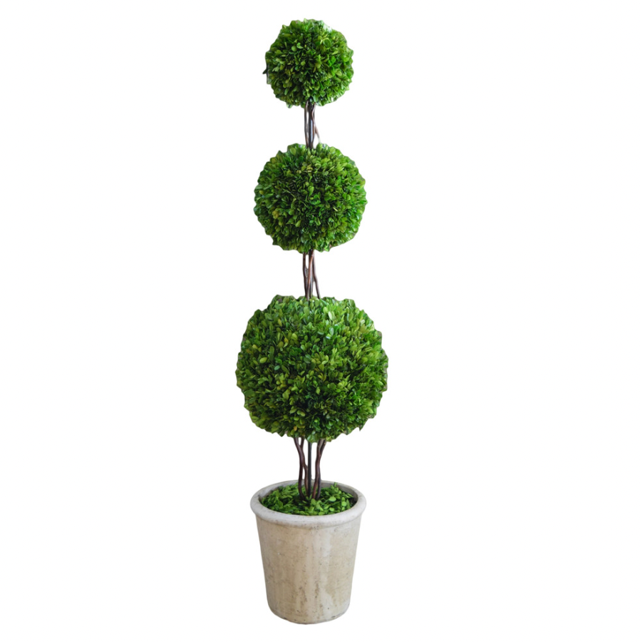Real Preserved Boxwood Triple Ball Topiary in Pot- 59"