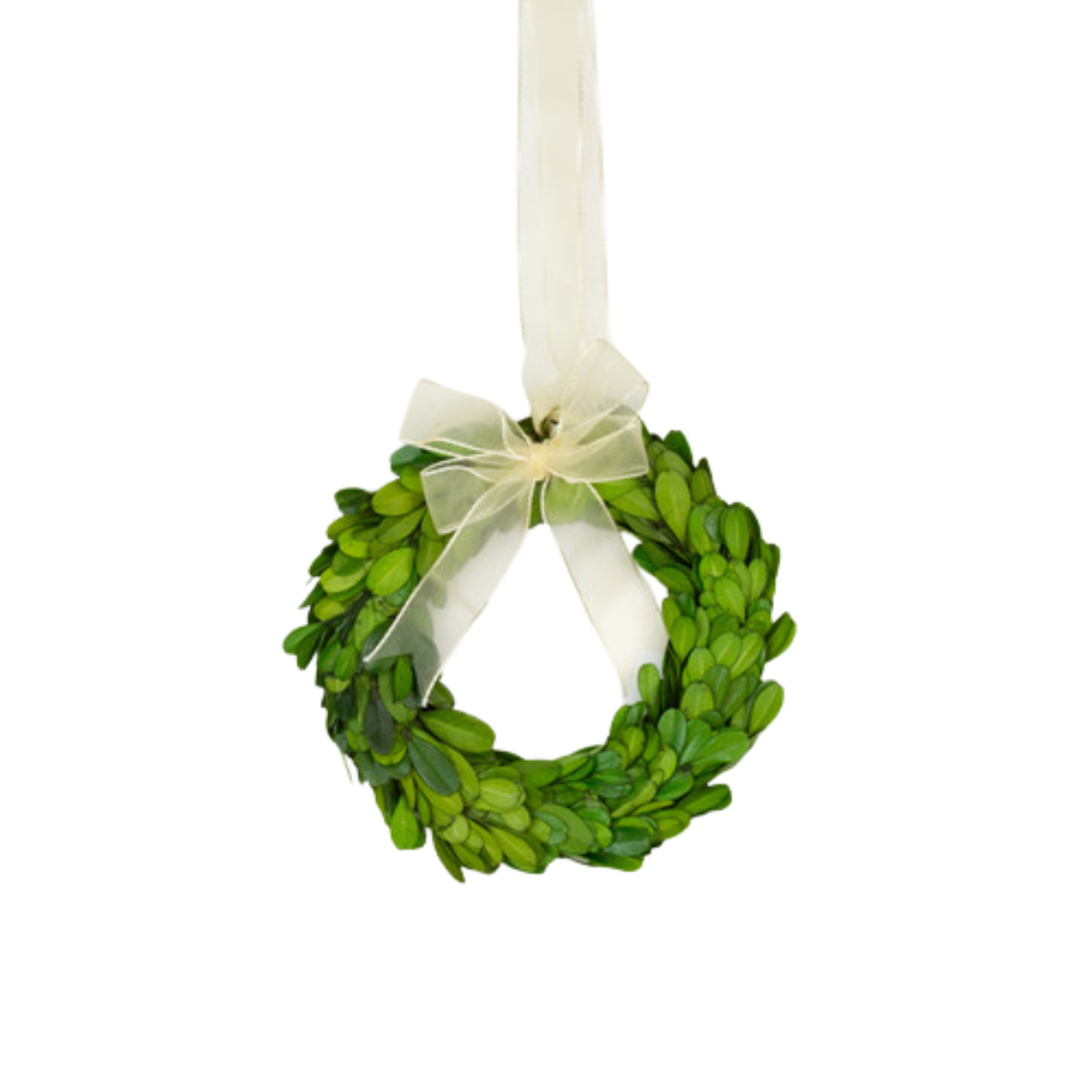 Real Preserved Boxwood Mini Wreath with Ribbon - 8"