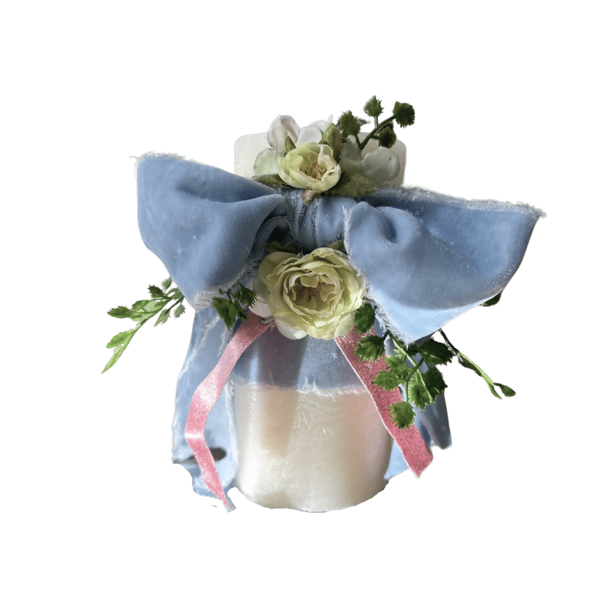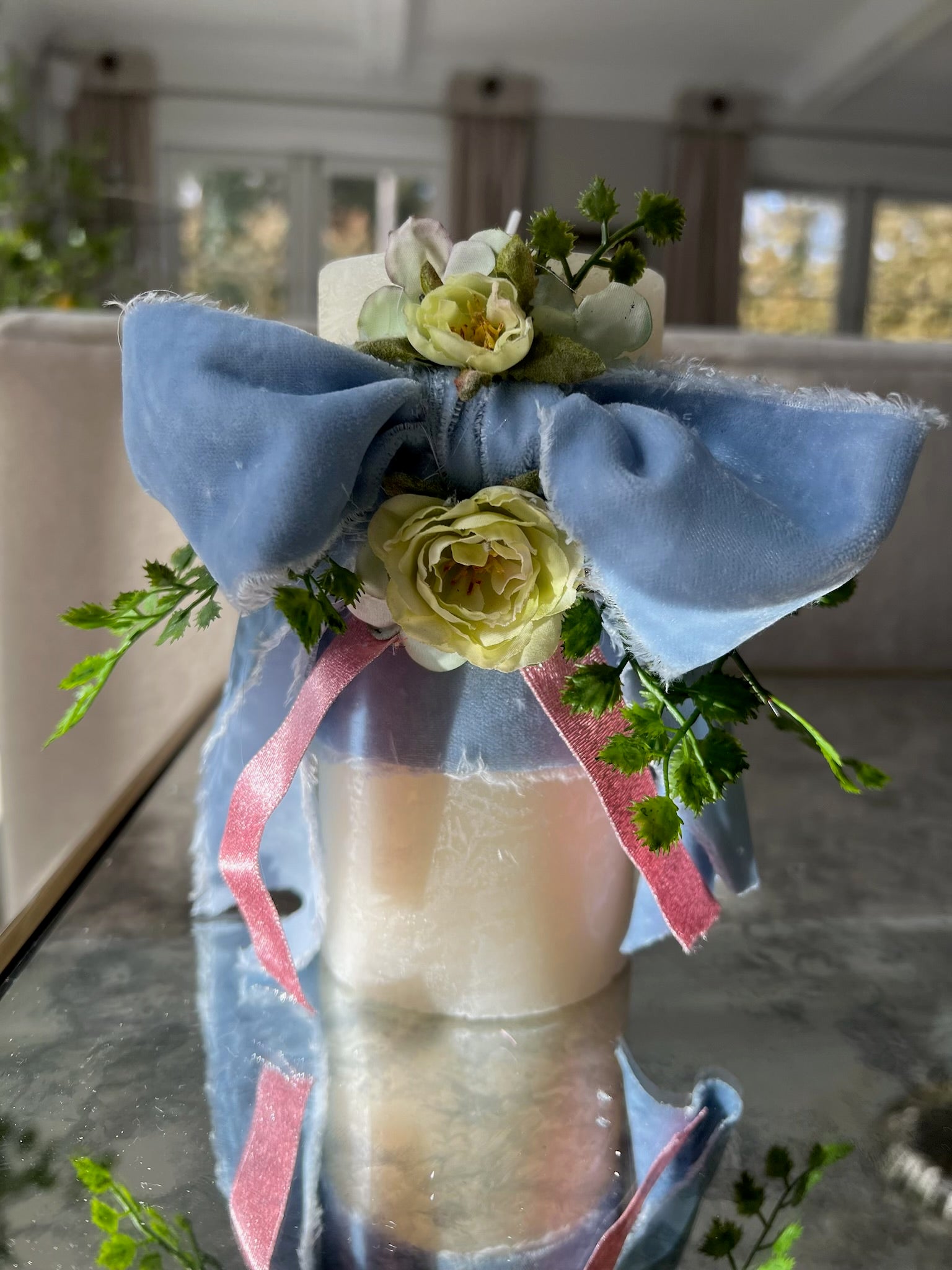 SK COLLECTION - Blue Ribbons White Pillar Candle